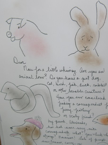 Of course this collection of letters from me to you will contain some whimsy. I’ll tell you how your pets can write letters to the pets of your friends. Really! My dog not only had a number of pen friends – others dog friends and even a cat by the name of Alice, but he wrote a letter for the collection. It’s true, well, sort of true. My dog and I will give you an idea or two on how to entertain your mail man with your whimsical animal letters.
